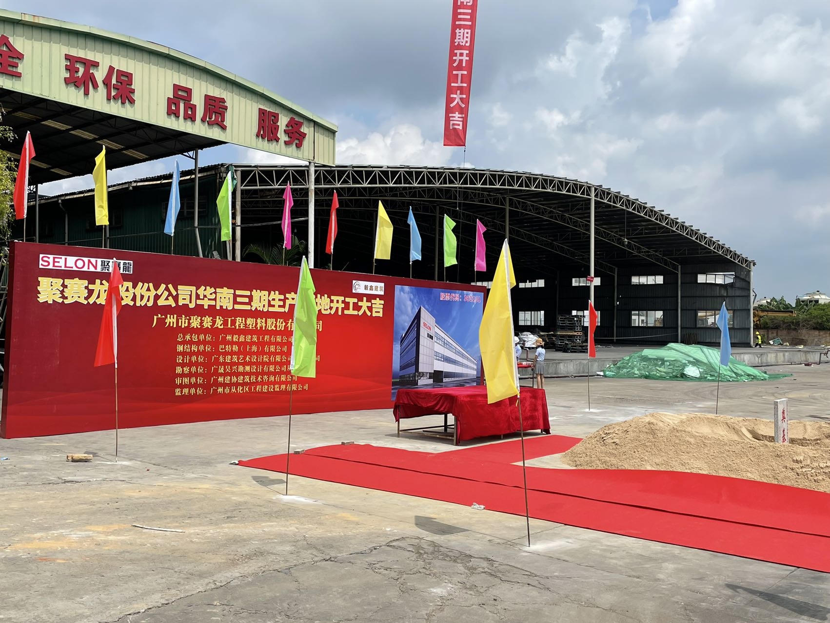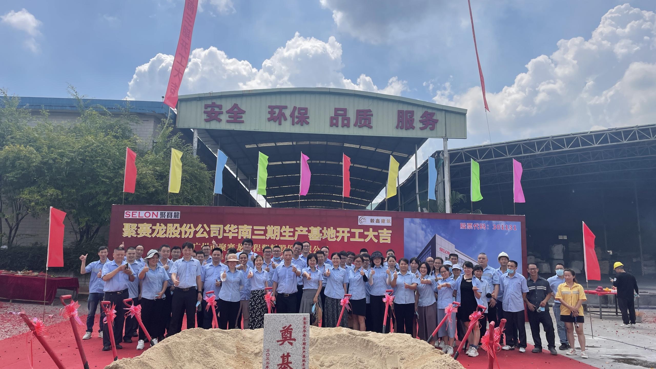 金秋送捷報,聚龍開新篇。2022年8月14日,聚賽龍華南三期生產基地建設項目開工儀式在廣州從化基地隆重舉行。廣州市從化區趙龍區長、鰲頭鎮政府朱秀英書記及明珠工業區管委會盧巨培副主任等相關領導等一行蒞臨了開工現場。聚賽龍公司董事長郝源增先生,副董事長任萍女士攜公司的研發、生產及各職能部門的領導參加了開工儀式。