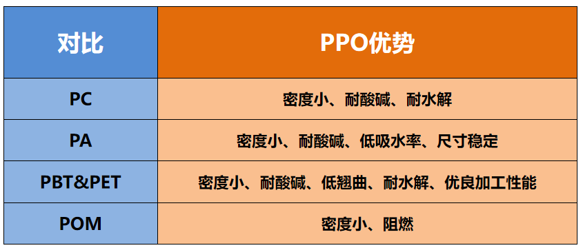 PPO吸水率底、密度底,優(yōu)勢明顯。