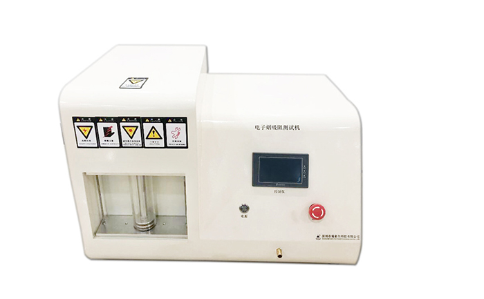 本機是用來測試成品霧化器、霧化器電池桿、 霧化器等一吸一停所得之口數。能精確的控制每口的抽吸容量,觸摸屏控制及設定相關參數。其原理是設置好每口抽吸容量、抽吸時間、抽吸間隔時間、循環次數等參數后對產品一吸一停如此反復循環直至:電池耗盡(下降到一定的電壓)、煙油消耗完畢、或發熱絲燒斷等不再正常工作后所得的次數,以此研判霧化器的使用壽命,并加以改良。